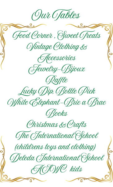 The AIWC annual Christmas Charity Bazaar is our most important and successful event which is held every year at the end of November or in early December. Members get involved in staffing specialty tables and all proceeds from the bazaar go to our charity fund. You can learn more about the charities we support in the “About Us” page.